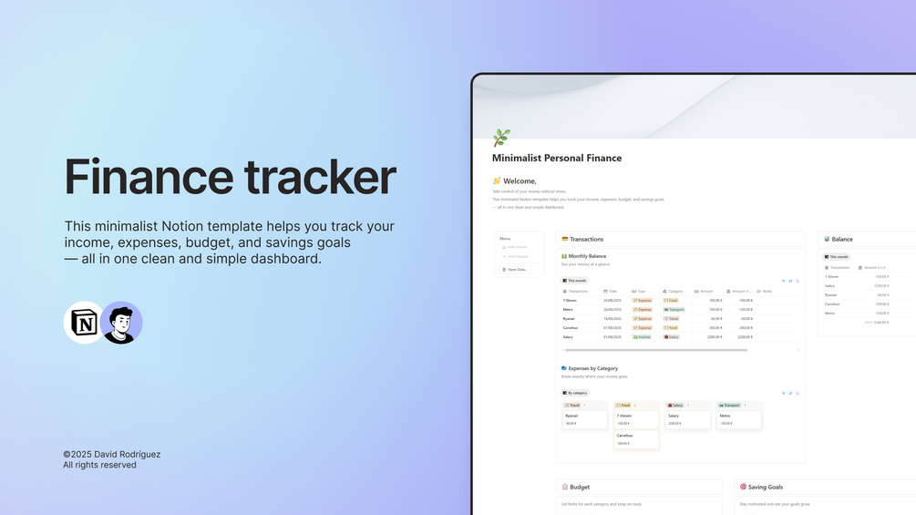 Minimalist Personal Finance | Notion Template for Money Management